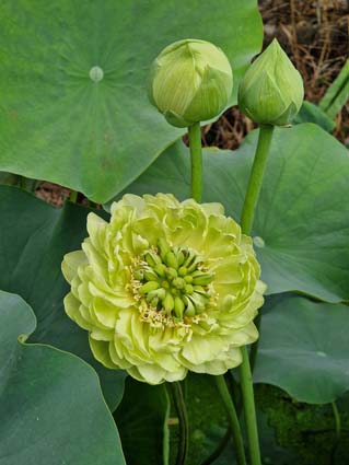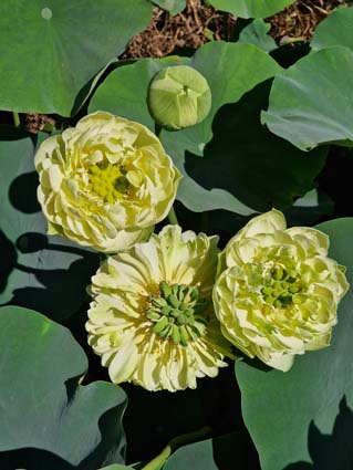 Probablement le cultivar le plus vert de notre collection avec le ‘Jade in Jiling’. Nous sommes fans de ce coloris chez les lotus ! La forme de la fleur s’apparente à celui des pivoines dans un coloris totalement inattendu ! ‘Gold and Jade Peony’ est une rareté à la fois précoce et florifère qui mérite une place de choix dans votre collection !