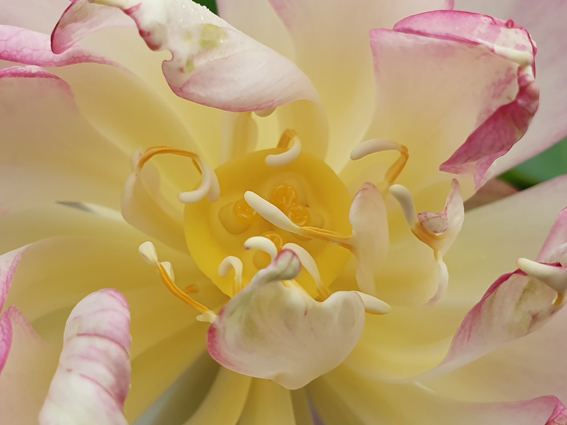 ‘Little Pink in Nanyue’ est un séduisant micro lotus. On apprécie particulièrement son cœur jaune lumineux et le dégradé rose pastel qui s’intensifie en bordure des pétales ainsi que sur leur face extérieur… Sa charmante petite trompette jaune citron au centre de la fleur attrape également bien le regard. Un mélange de coloris et de nuances pastel très harmonieux ! Florifère et facile de culture, il est idéal pour vos plus petits contenants.