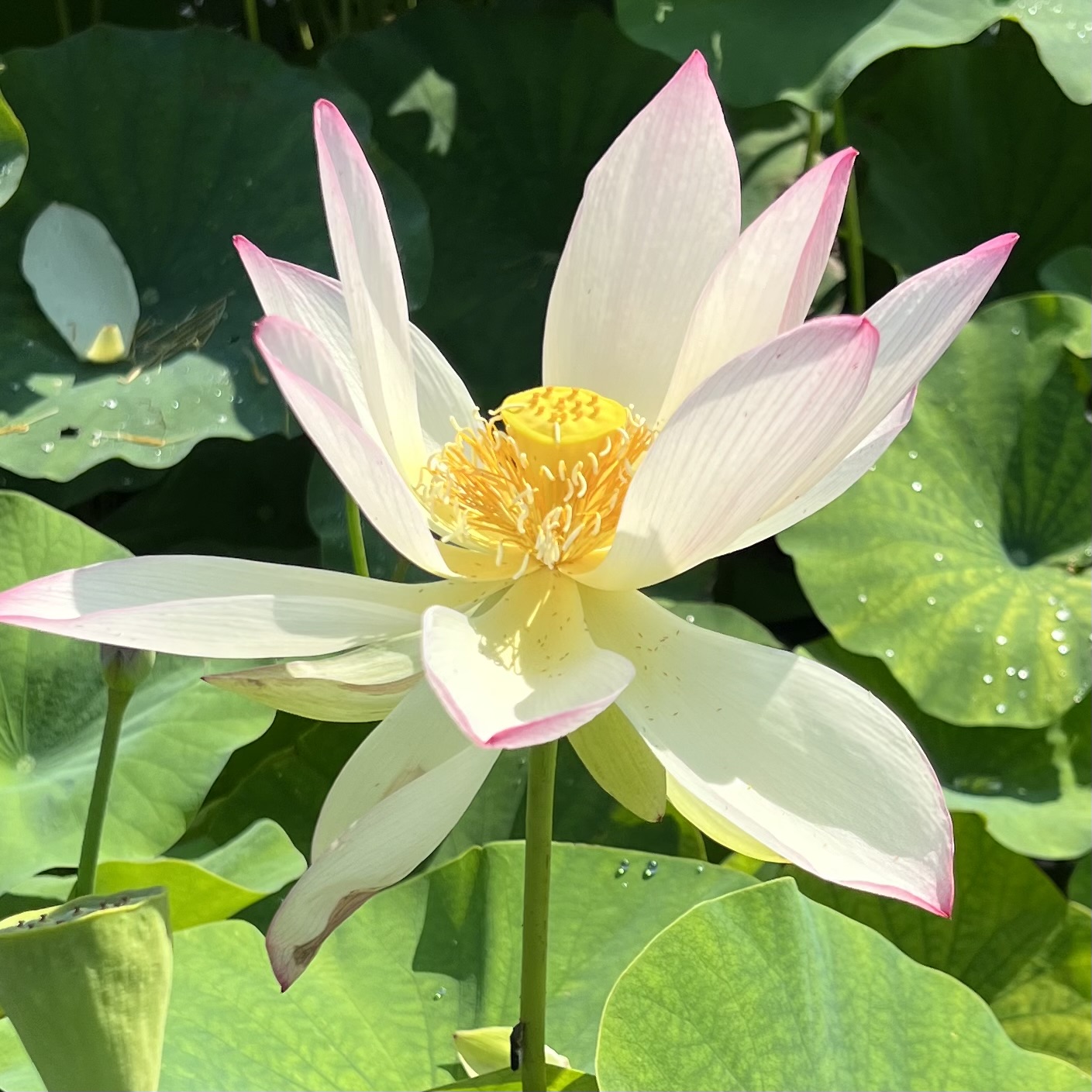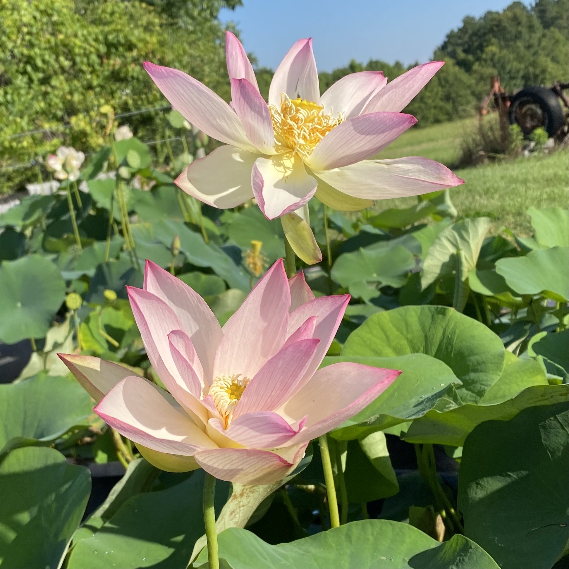 Le Jardin nelumbo à décidement une addiction pour les lotus blancs flammés de rose… La poésie de ‘Piano Melody’ apportera un sentiment de sérénité dans votre jardin ! La forme particulière de sa fleur qui danse dans le vent vous incitera à la rêverie et à la méditation…